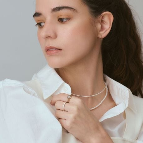 身に着けるだけで程よい抜け感を演出する、モダンなシルバーチョーカー。ネックレスチャームはもちろん、ピアスチャームも通せる太さのパイプを使用しており、さまざまなアレンジをお楽しみいただけます。※超音波洗浄:不可(パイプ材のため)※開口部端と端は位置は揃いません。使用の中で左右差が出る可能性があります。