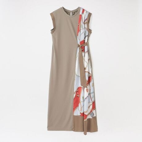 ドレスの左サイドには、LOVELESSオリジナルのスカーフ柄をプリントしたオリジナルのテキスタイルを使用。