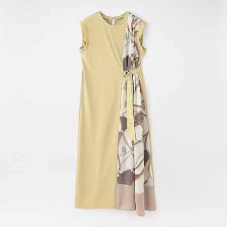ドレスの左サイドには、LOVELESSオリジナルのスカーフ柄をプリントしたオリジナルのテキスタイルを使用。