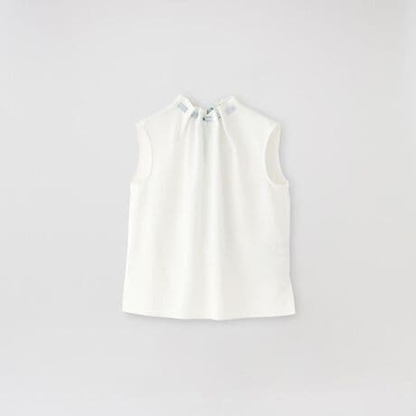 ゆったりとしたサイズ感で、身体のラインを拾いにくく、軽やかに着こなせるノースリーブブラウスです。