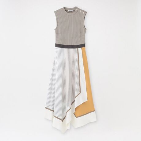 毎年好評のアシンメトリーデザインのカラーブロッキングワンピース