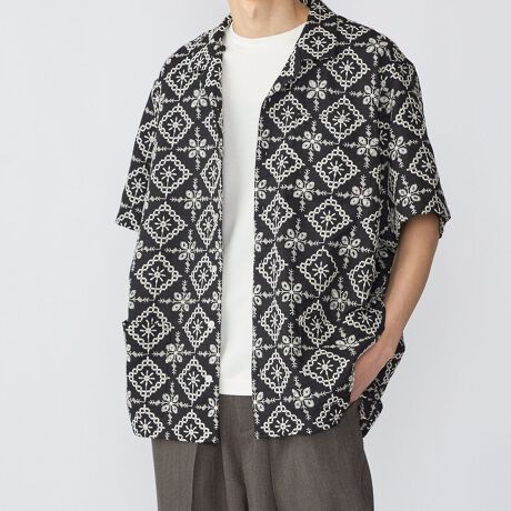 リラックスしたサイジングのオープンカラーシャツ。