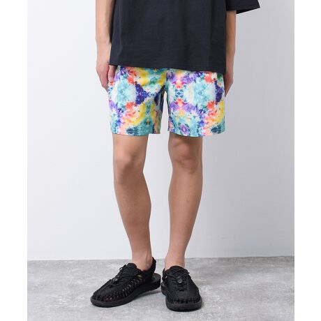【item info】総柄スイムショートパンツ。毎シーズン人気の総柄デザインのスイムショートパンツ。今年はショート丈にすることでスタイリッシュでオシャレな雰囲気に◎柄はジュニア世代にマッチする大人デザインで「バンダナ、迷彩、ボタニカル、タイダイ、ヒョウ」など多彩な柄をご用意しました。ぜひお好みの柄をお選びください。