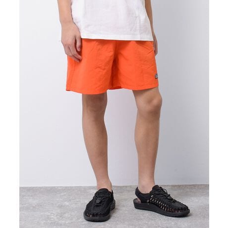 【item info】シンプルデザインに仕上げたスイムショートパンツ。装飾を極力省いたシンプルデザインなので履く人を選ばない使い勝手のい水着です◎ワンポイントにアウトドアデザインの織りネームを取り付けることでさり気ないアクセントに。カラー展開は無地の5色と左右で配色を変えたツートーンカラーを3色ご用意しています。