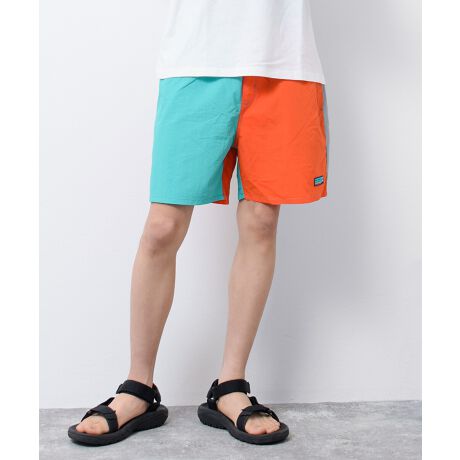【item info】シンプルデザインに仕上げたスイムショートパンツ。装飾を極力省いたシンプルデザインなので履く人を選ばない使い勝手のい水着です◎ワンポイントにアウトドアデザインの織りネームを取り付けることでさり気ないアクセントに。カラー展開は無地の5色と左右で配色を変えたツートーンカラーを3色ご用意しています。