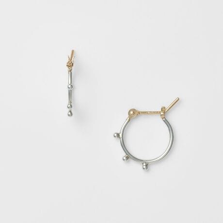 ドットデザインが印象的な、小ぶりのフープピアス。正面からはシンプルなラインに見えつつ、側面に施したドットがさりげない表情を添えています。日常の装いに自然になじみながら、控えめなアクセントとして上品に輝くデザインです。※手造り線加工の為、形状に個体差があります。予めご了承ください。※ポストはK10を使用しております。