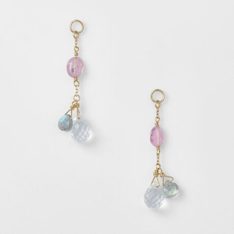 ピンク・グレー・クリアの3色をやさしく組み合わせた、上品なピアスチャームです。淡く柔らかな色合いが顔まわりを明るく演出し、カジュアルからきれいめまで幅広いスタイルに自然と馴染みます。※天然石や天然素材を使用しているものは、サイズ・色味・風合いの違いや、若干の傷、内包物の有無などに個体差があります。予めご了承ください。※連材を使用しているため、多少の傷や欠けが見られる場合がございます。