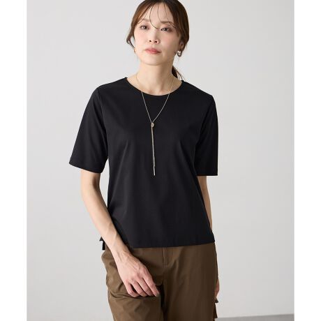 [型番:351689]顔まわりを明るく見せるすごツヤTなめらかなツヤ感が特徴のスゴつや素材を使用した半袖Tシャツ。ベーシックカラーに加え、顔まわりが華やぐ新色も揃い、気分やシーンに合わせて選べる一枚です。アクセサリーをプラスすれば、シンプルながらも印象的なスタイリングに仕上がります。