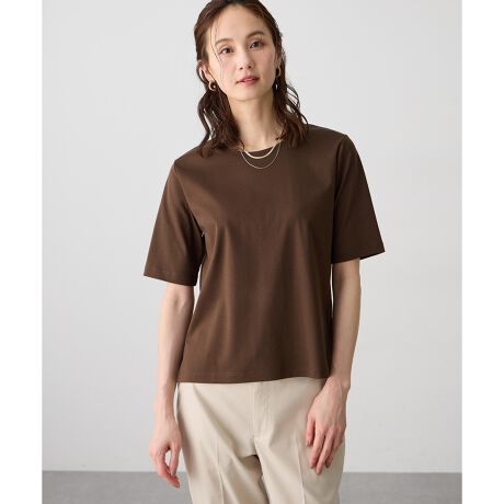 [型番:351689]顔まわりを明るく見せるすごツヤTなめらかなツヤ感が特徴のスゴつや素材を使用した半袖Tシャツ。ベーシックカラーに加え、顔まわりが華やぐ新色も揃い、気分やシーンに合わせて選べる一枚です。アクセサリーをプラスすれば、シンプルながらも印象的なスタイリングに仕上がります。