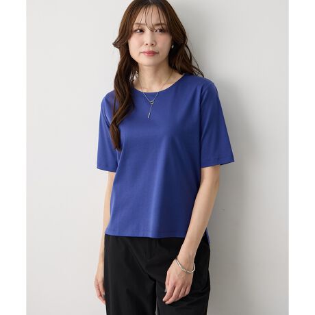 [型番:351689]顔まわりを明るく見せるすごツヤTなめらかなツヤ感が特徴のスゴつや素材を使用した半袖Tシャツ。ベーシックカラーに加え、顔まわりが華やぐ新色も揃い、気分やシーンに合わせて選べる一枚です。アクセサリーをプラスすれば、シンプルながらも印象的なスタイリングに仕上がります。