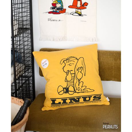 ヴィンテージのPEANUTSスウェットから着想を得た、遊び心あふれるスウェットクッションカバー。