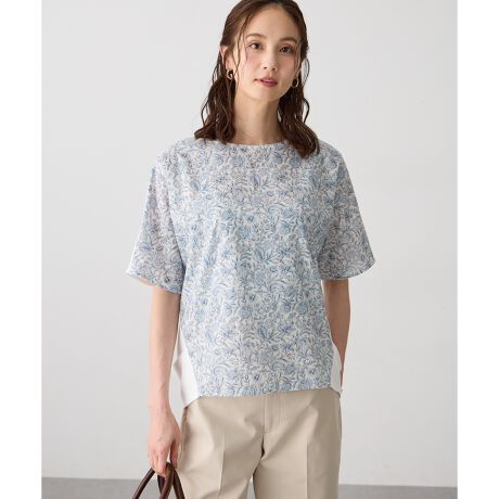 [型番:351687]やさしく映えるリバティプルオーバーリバティらしい花柄プリントを前身頃にあしらった、異素材切り替えのカットソープルオーバー。ゆったりとしたシルエットで体のラインを拾いにくく、リラックスしながらきれいに着られる一枚です。羽織りのインナーとして取り入れて、柄をアクセントにする着こなしもおすすめです。