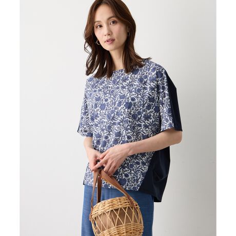 [型番:351687]やさしく映えるリバティプルオーバーリバティらしい花柄プリントを前身頃にあしらった、異素材切り替えのカットソープルオーバー。ゆったりとしたシルエットで体のラインを拾いにくく、リラックスしながらきれいに着られる一枚です。羽織りのインナーとして取り入れて、柄をアクセントにする着こなしもおすすめです。