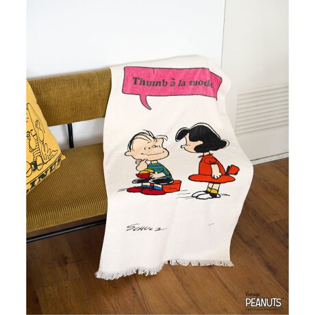 ヴィンテージタオルをイメージし、PEANUTSの仲間たちとセリフやカラーリング、フリンジ仕様など、細部まで拘りました。