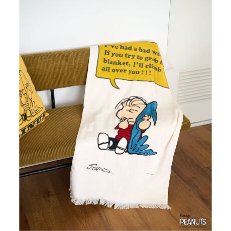 ヴィンテージタオルをイメージし、PEANUTSの仲間たちとセリフやカラーリング、フリンジ仕様など、細部まで拘りました。