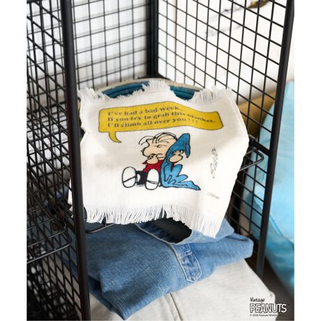 ヴィンテージタオルをイメージし、PEANUTSの仲間たちとセリフやカラーリング、フリンジ仕様など、細部まで拘りました。