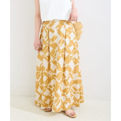 水彩タッチの大胆な柄でコーデの主役になってくれるマキシ丈スカート。