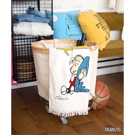 ヴィンテージタオルをイメージし、PEANUTSの仲間たちとセリフやカラーリング、フリンジ仕様など、細部まで拘りました。