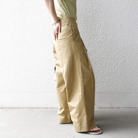 タックを入れる場所や高さにもこだわり、ふくらみがありながらウエストや腰回りはスッキリしたデザインに。