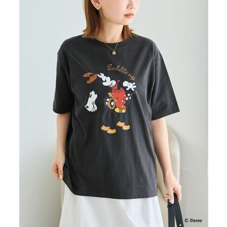 レトロタッチのミッキーデザインがこなれた雰囲気を演出し、フロントの遊び心あるグラフィックがコーデの主役に。
