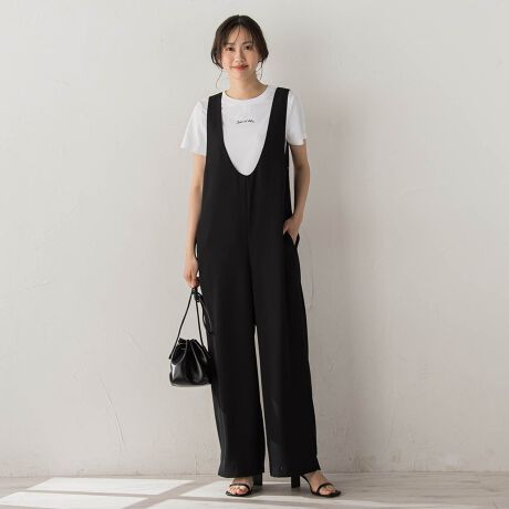 Uネックの襟がミニマルなオールインワン。