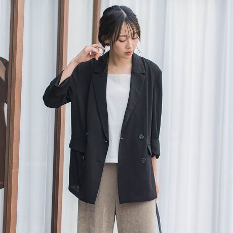 肩は少し落とし、抜け感のあるラフな印象を演出。