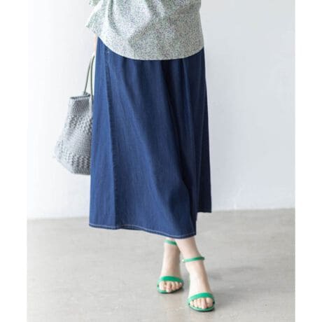 [型番:524324]楽にきれい見えするデニムガウチョやわらかなデニム素材で仕立てた、穿き心地のよいガウチョパンツ。広がりすぎないシルエットで体型をカバーしながら、すっきりとした印象に仕上がります。ウエストは総ゴム仕様でストレスなく穿けるのも嬉しいポイントです。スニーカーからサンダルまで合わせやすく、デイリーに活躍します。