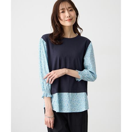 マルイウェブチャネル   /   プチ オンフルール   /   トップス   /   Tシャツ・カットソー   /   【Liberty】リバティレイヤード風プルオーバー【オーガニックコットン・UVカット・接触冷感】