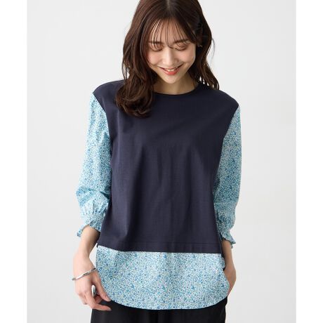 【Liberty】リバティレイヤード風プルオーバー【オーガニックコットン・UVカット・接触冷感】