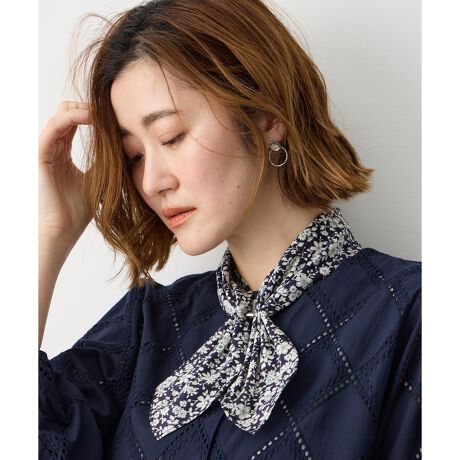 [型番:526807]巻くだけで華やぐリバティスカーフ接触冷感機能付きで、ひんやりとしたつけ心地が嬉しいワンタッチスカーフ。リバティならではの繊細な柄が顔まわりを明るく見せ、スタイリングに上品なアクセントをプラスします。首元にさっと巻くだけでコーデの印象を変えられ、シンプルなトップスに合わせるだけでも華やかな仕上がりに。