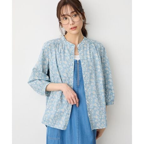 [型番:523292]着こなし広がるリバティ前開きシャツ羽織りとしても使える、着回し力の高い前開きデザインのブラウス。リバティならではの繊細な柄とやわらかな肌触りで、さらっと着るだけでも印象が整います。ボタンを閉じて一枚着として着るのはもちろん、前を開けて軽く羽織るだけでコーデにアクセントをプラスできます。