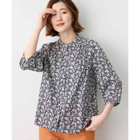 [型番:523292]着こなし広がるリバティ前開きシャツ羽織りとしても使える、着回し力の高い前開きデザインのブラウス。リバティならではの繊細な柄とやわらかな肌触りで、さらっと着るだけでも印象が整います。ボタンを閉じて一枚着として着るのはもちろん、前を開けて軽く羽織るだけでコーデにアクセントをプラスできます。