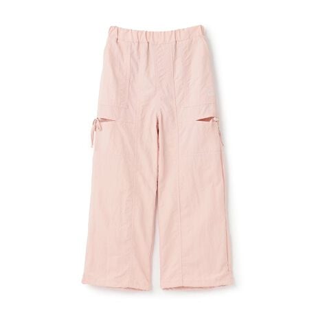 総ゴム仕様のウエストでお着替えしやすいロングパンツです。太ももあたりのスリットにリボンがついており、涼しいだけでなく女の子っぽさがあります。