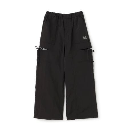 総ゴム仕様のウエストでお着替えしやすいロングパンツです。太ももあたりのスリットにリボンがついており、涼しいだけでなく女の子っぽさがあります。