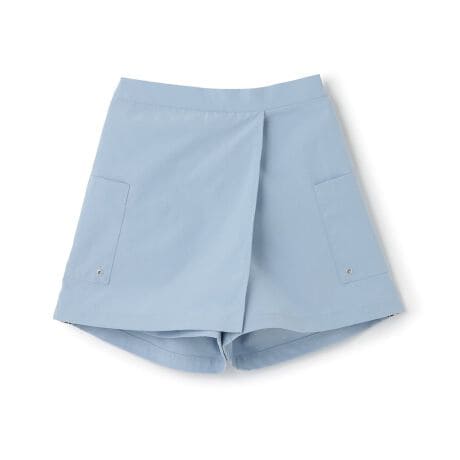 サイドのロゴ入りテープがスポーティで可愛いスカパンです。ショートパンツ型なので、アクティブだけどおしゃれしたい日にもぴったり。ウエストの後ろにゴムが入っており、着脱も簡単です。ポケットつきで機能性があります◎。