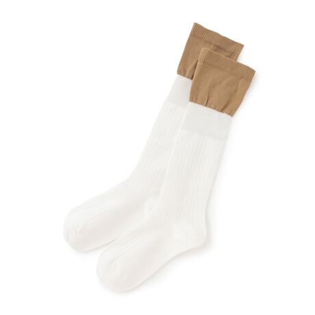 トレンドのレイヤード風デザインを楽しめるハイソックスです。