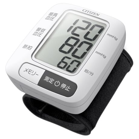 最高血圧値、最低血圧値、脈拍数を60回分メモリーします。