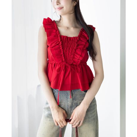 立体的なフリルが華やかさを演出!フリルデザインペプラムブラウス
