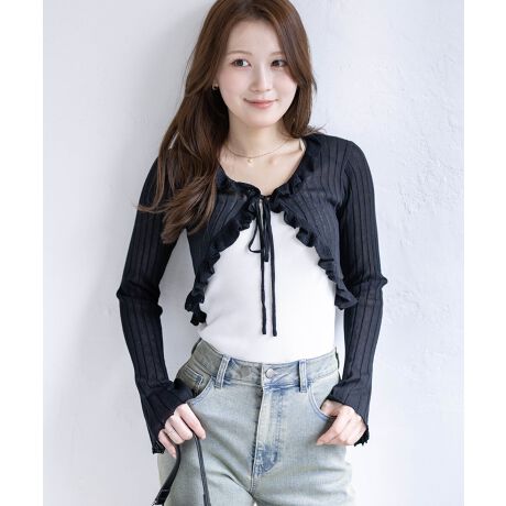 ハイウエストボトムと合わせてスタイルよく見せるのも◎ワンピースの上から羽織って甘さをプラスするのもおすすめです♪