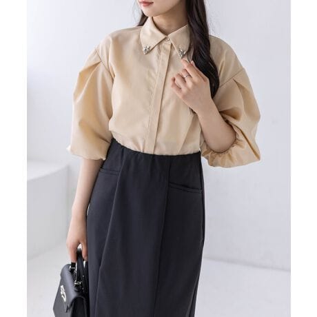 控えめな華やかさを求める大人のためのシャツ!ビジュー襟バルーンスリーブヒヨクシャツ