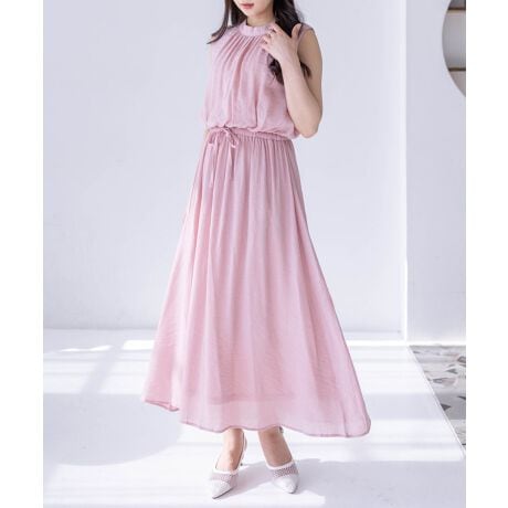 一気に夏らしい!ウエスト切替ノースリーブワンピース