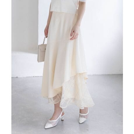 スタイリングを華やかに仕上げる!シアーチェックドッキングアシンメトリースカート
