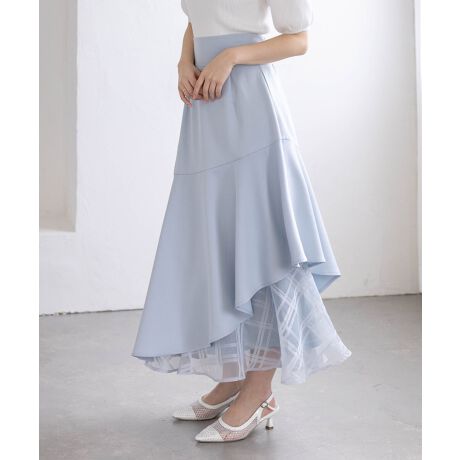 スタイリングを華やかに仕上げる!シアーチェックドッキングアシンメトリースカート