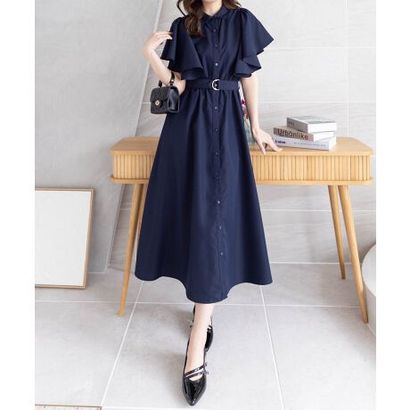 女性らしい!ウエストベルトフリルスリーブワンピース
