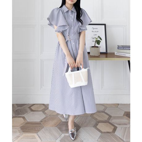 存在感のある肩のフリルで華奢見えするワンピースです。
