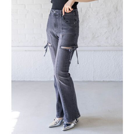トレンド感たっぷりのサイドスリットにリボンディテールが目を惹く主役級デニム。
