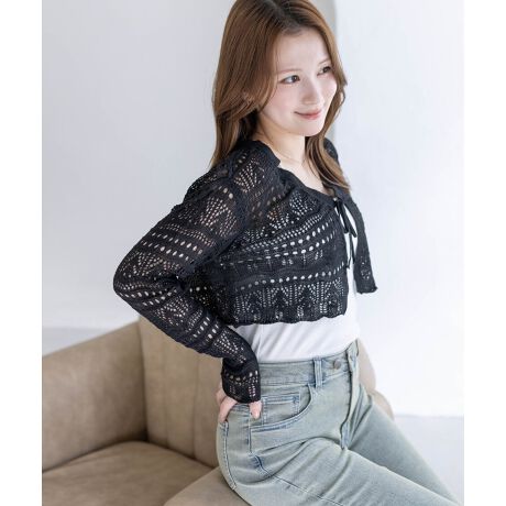 軽く羽織って、ちゃんとおしゃれ!透かし編みニットボレロカーディガン