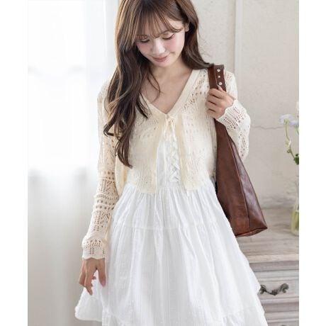 軽やかな透かし編みデザインが魅力のカーディガン。
