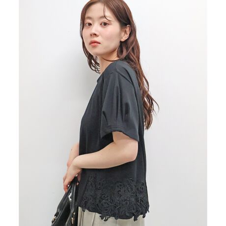両サイドにあしらったケミカルレースがさりげなく女性らしさを引き立てます。