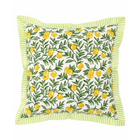手彫りの木版で染料を押して仕上げる、インドの伝統技法“ブロックプリント”のクッションカバー。